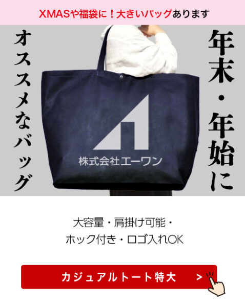 Posted inメルマガアーカイブ 【福袋・Xmas準備】超特大バッグ&春の新作登場!子ども向けアウトレットも更新(2025/11/5配信) Posted by By エーワン 2025年11月5日 毎月月初水曜日恒例のエーワン通信!こんにちは。メルマガ担当のナミです。 冬の訪れとともに、クリスマス・福袋などの年末年始の準備はお早めに!今月は、イベント用特大バッグに加えて、来春の新作ラッピング・お得なアウトレット品をご紹介します。 \ 本日のコンテンツ / エーワン 不織布専門メーカー エーワンです。不織布を使ったバッグやラッピング、洋服カバーを製造しています。シルク印刷、フルカラー印刷も承っております! View All Posts Post navigation Previous Post 【福袋にも最適】中身も安心!チャック付き・大容量不織布バッグ「セールバッグ」特集