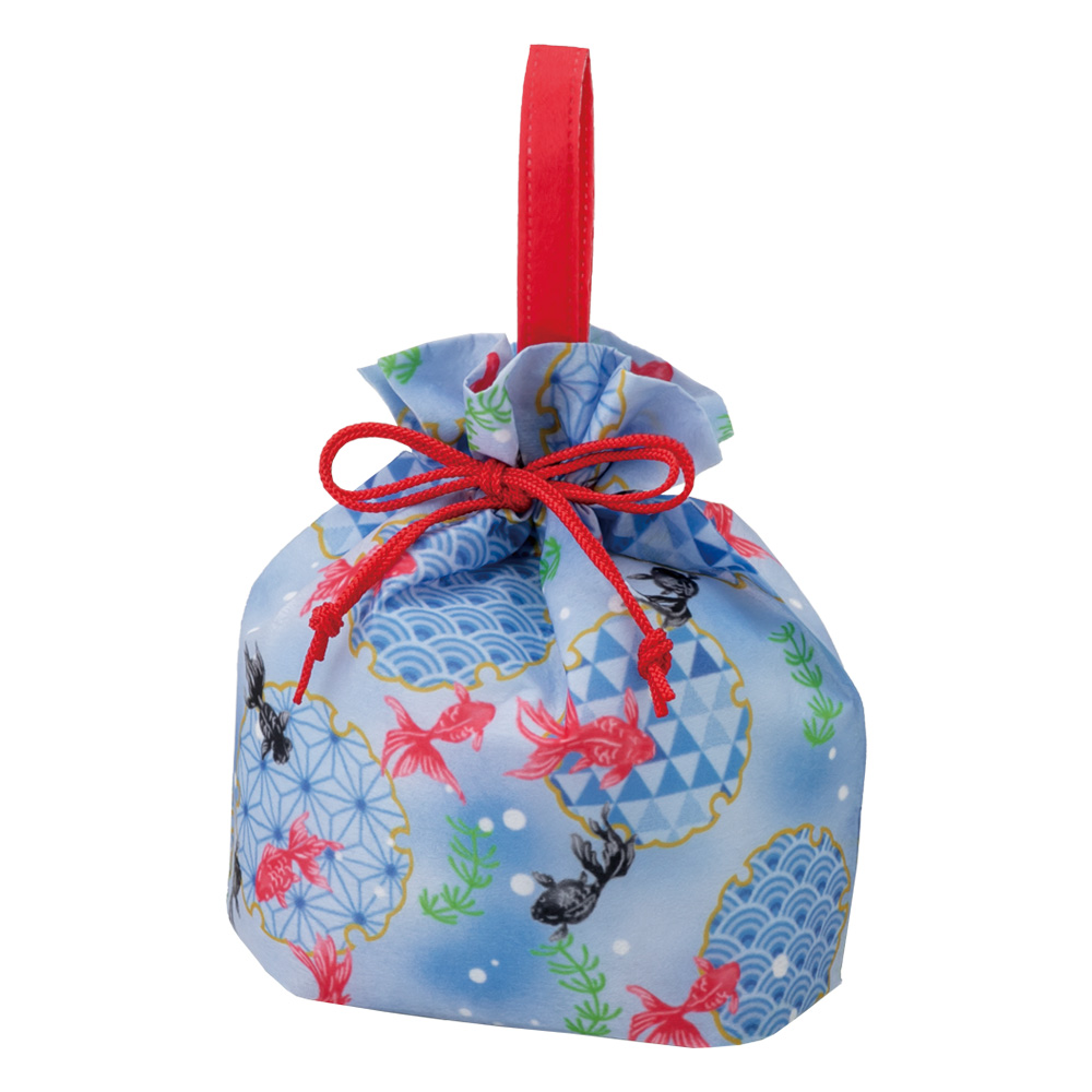 涼しげに泳ぐ金魚の持ち手付き巾着。夏におすすめ