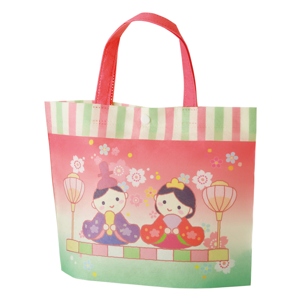 みつめあう姿がキュートなひなまつりラッピング。ディスプレイ要素の高いデザインで、店頭映えもばっちり!持ち手付きで使いやすいシンプルトートは小さなお子さんやお孫さんへのギフトにピッタリです。マドレーヌが7個ほど入るサイズ。20枚単位での注文を承ります。