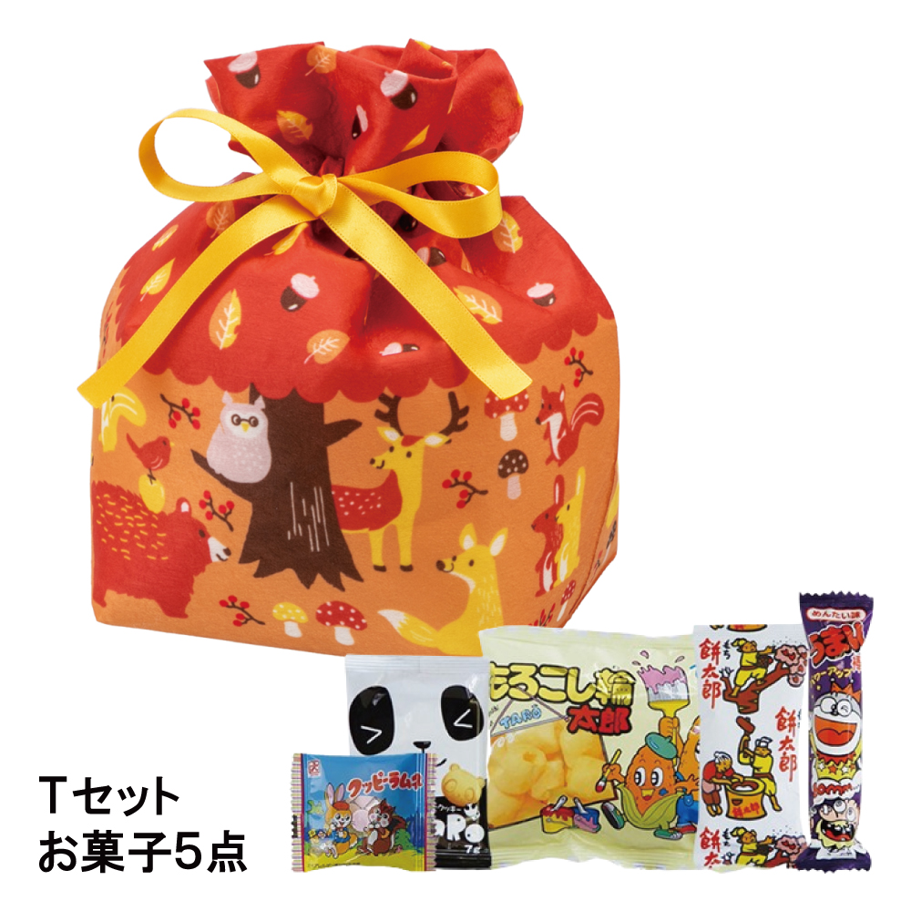 【お菓子セット】巾着 小 森のどうぶつ秋柄FP Tセット