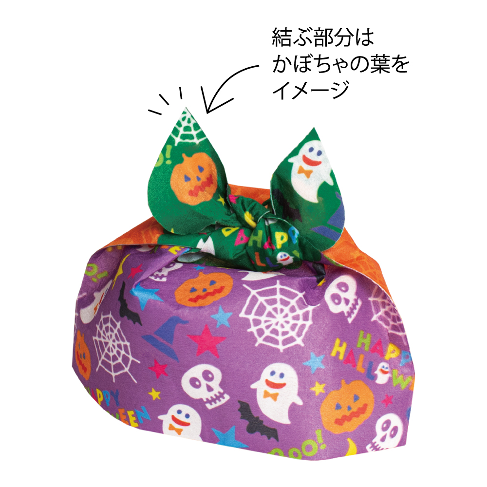 かぼちゃのリバーシブル風呂敷風ラッピング。お菓子入り