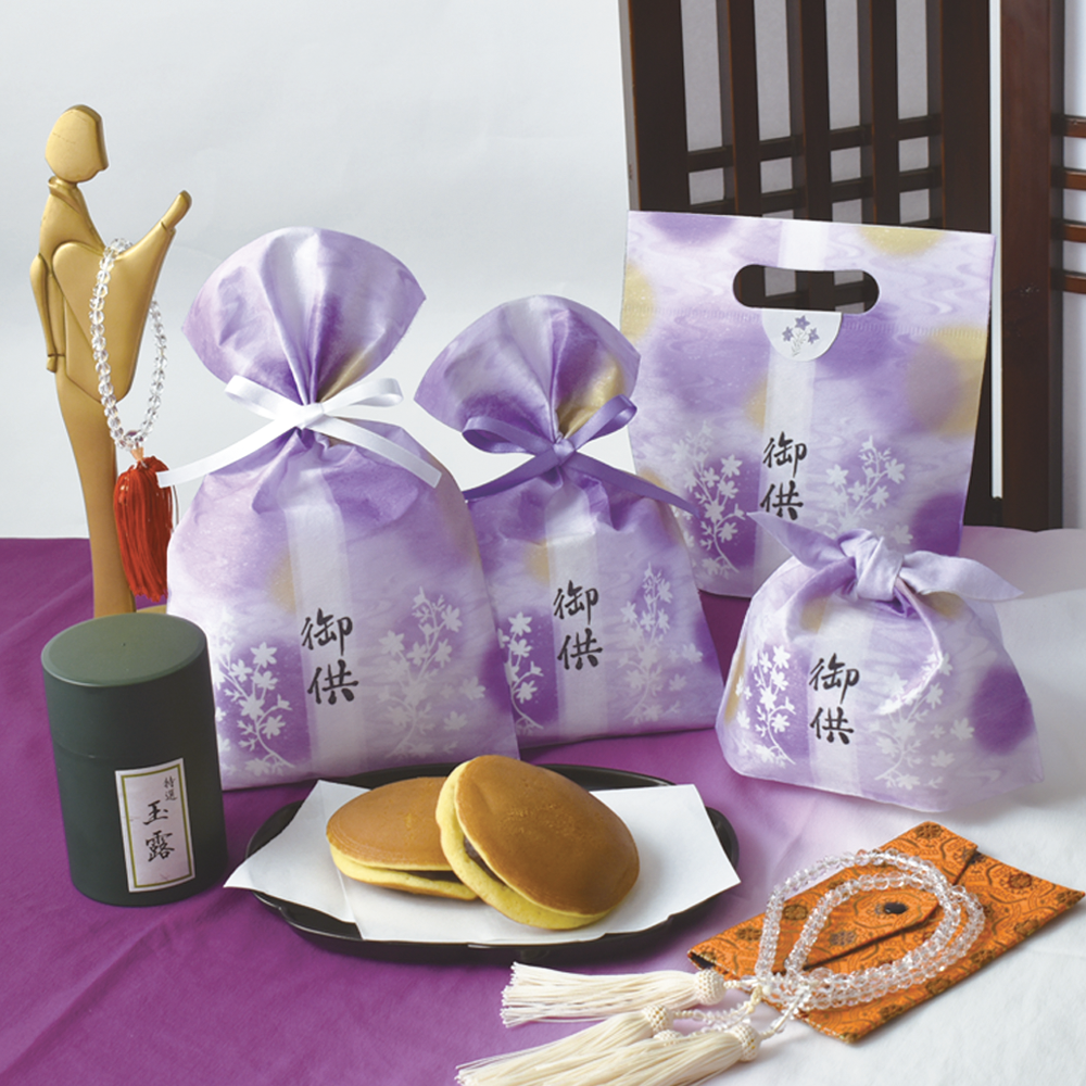 上品なお供えシリーズはお彼岸など法要におすすめのラッピング。他にも、秋の味覚の芋や栗・かぼちゃのデザインやかわいい動物たちのデザインなど多数ご用意。